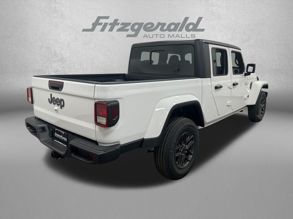 New Price! Bright White Clearcoat 2025 Jeep Gladiator Sport S 4WD 8-Speed Automatic 3.6L V6 24V VVT Advanced Brake Assist, Apple CarPlay/Android Auto, Automatic Headlamps, Auxiliary Switches, Black 3-Piece Hard Top, Body Color Fender Flares (2-Piece), Class IV Receiver Hitch, Dark Sky Appearance Package, Daytime Running Lamp System, Deep Tint Sunscreen Windows, Enhanced Adaptive Cruise Control, Freedom Panel Storage Bag, Full Speed Forward Collision Warning Plus, Heavy-Duty Engine Cooling, Mold In Color Bumper w/Gloss Black, MOPAR Spray In Bedliner, Normal Duty Plus Suspension, Panic alarm, Performance Hood, Power Heated Mirrors, Premium Wrapped Steering Wheel, Quick Order Package 24S Sport S, Rear Sliding Window, Rear Window Defroster, Remote keyless entry, Security Alarm, Sun Visors w/Illuminated Vanity Mirrors, Trailer Hitch Zoom, Trailer Tow & Aux Switch Group, Wheels: 17 x 7.5 Gray. Price includes: $1000 - 2025 Southeast BC Bonus Cash. Exp. 02/02/2026 $1000 - 2025 Southeast BC Regional Lease Bonus Cash. Exp. 02/02/2026 $2250 - 2025 National Retail Bonus Cash . Exp. 02/02/2026