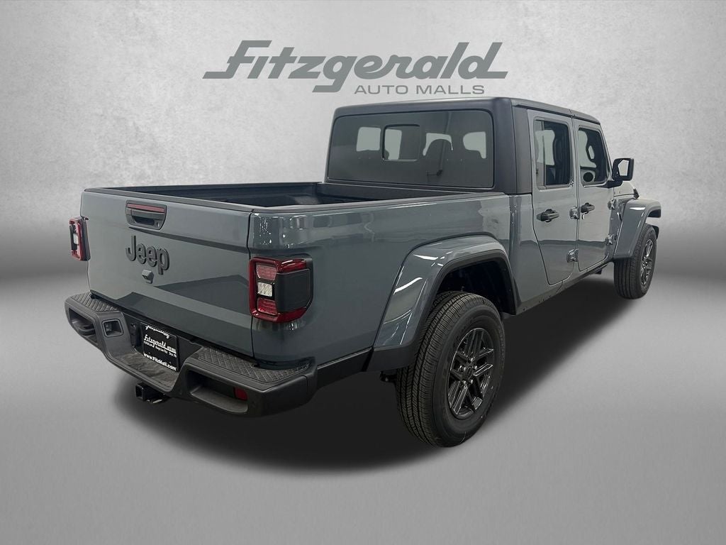 New Price! Anvil Clearcoat 2025 Jeep Gladiator Sport S 4WD 8-Speed Automatic 3.6L V6 24V VVT Advanced Brake Assist, Auto High Beam Headlamp Control, Automatic Headlamps, Auxiliary Switches, Blind Spot & Cross Path Detection, Body Color Fender Flares (2-Piece), Brake assist, Class IV Receiver Hitch, Dark Sky Appearance Package, Daytime Running Lamp System, Deep Tint Sunscreen Windows, Enhanced Adaptive Cruise Control, Full Speed Forward Collision Warning Plus, Heavy-Duty Engine Cooling, LED Taillamps, Mold In Color Bumper w/Gloss Black, Normal Duty Plus Suspension, ParkSense Rear Park Assist System, Performance Hood, Power Heated Mirrors, Premium Wrapped Steering Wheel, Quick Order Package 24S Sport S, Safety Group, Security Alarm, Sun Visors w/Illuminated Vanity Mirrors, Trailer Hitch Zoom, Trailer Tow & Aux Switch Group, Wheels: 17 x 7.5 Gray. Price includes: $1000 - 2025 Southeast BC Bonus Cash. Exp. 02/02/2026 $1000 - 2025 Southeast BC Regional Lease Bonus Cash. Exp. 02/02/2026 $2250 - 2025 National Retail Bonus Cash . Exp. 02/02/2026