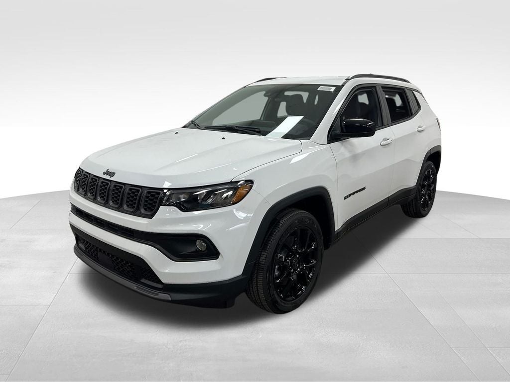 New Price! bright white clearcoat 2026 Jeep Compass Latitude 4WD 8-Speed Automatic 2.0L I4 DOHC 4WD, 3.73 Final Drive Ratio, 4-Wheel Disc Brakes, 6 Speakers, ABS brakes, Air Conditioning, Auto High-beam Headlights, Automatic temperature control, Brake assist, Compass, Delay-off headlights, Driver door bin, Driver vanity mirror, Dual front impact airbags, Dual front side impact airbags, Electronic Stability Control, Four wheel independent suspension, Front anti-roll bar, Front Bucket Seats, Front fog lights, Front reading lights, Fully automatic headlights, Heated door mirrors, Heated front seats, Heated steering wheel, Illuminated entry, Knee airbag, Leather Shift Knob, Leather steering wheel, Low tire pressure warning, Occupant sensing airbag, Outside temperature display, Overhead airbag, Overhead console, Panic alarm, ParkView Rear Back-Up Camera, Passenger door bin, Passenger vanity mirror, Power door mirrors, Power steering, Power windows, Premium Cloth/Vinyl Bucket Seats, Rear anti-roll bar, Rear window defroster, Rear window wiper, Remote keyless entry, Security system, Speed control, Split folding rear seat, Spoiler, Steering wheel mounted audio controls, Tachometer, Telescoping steering wheel, Tilt steering wheel, Traction control, Variably intermittent wipers, Wheels: 18 x 7 Gloss Black Painted Aluminum.