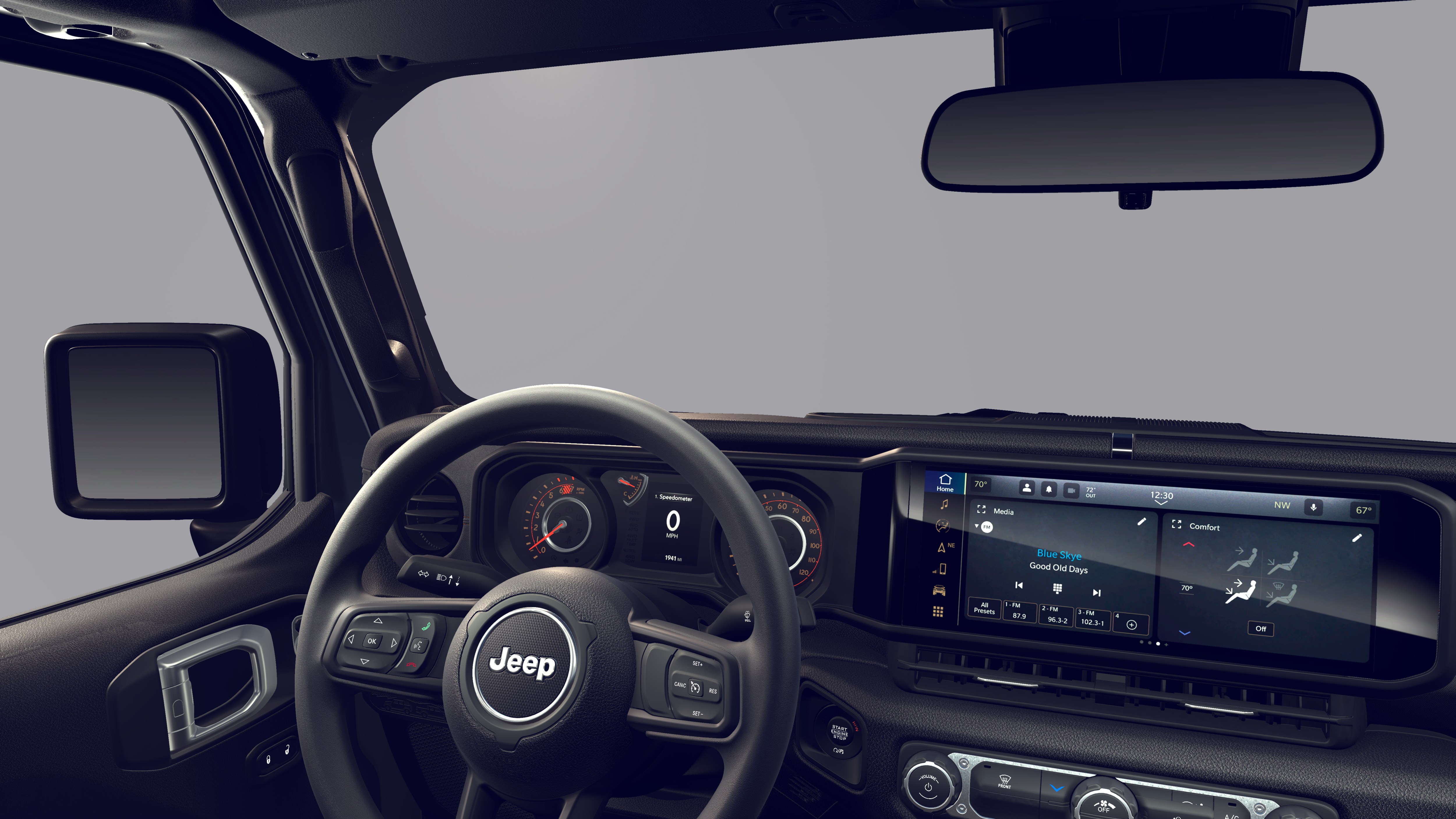 Bright white clearcoat 2026 Jeep Wrangler Sport 4WD 8-Speed Automatic 2.0L I4 DOHC 12.3 Touchscreen Display, ABS brakes, Apple CarPlay/Android Auto, Compass, Electronic Stability Control, Illuminated entry, Low tire pressure warning, ParkView Rear Back-Up Camera, Power windows, Quick Order Package 22B Sport, Radio: Uconnect 5 with 12.3 Display, Remote keyless entry, Traction control.