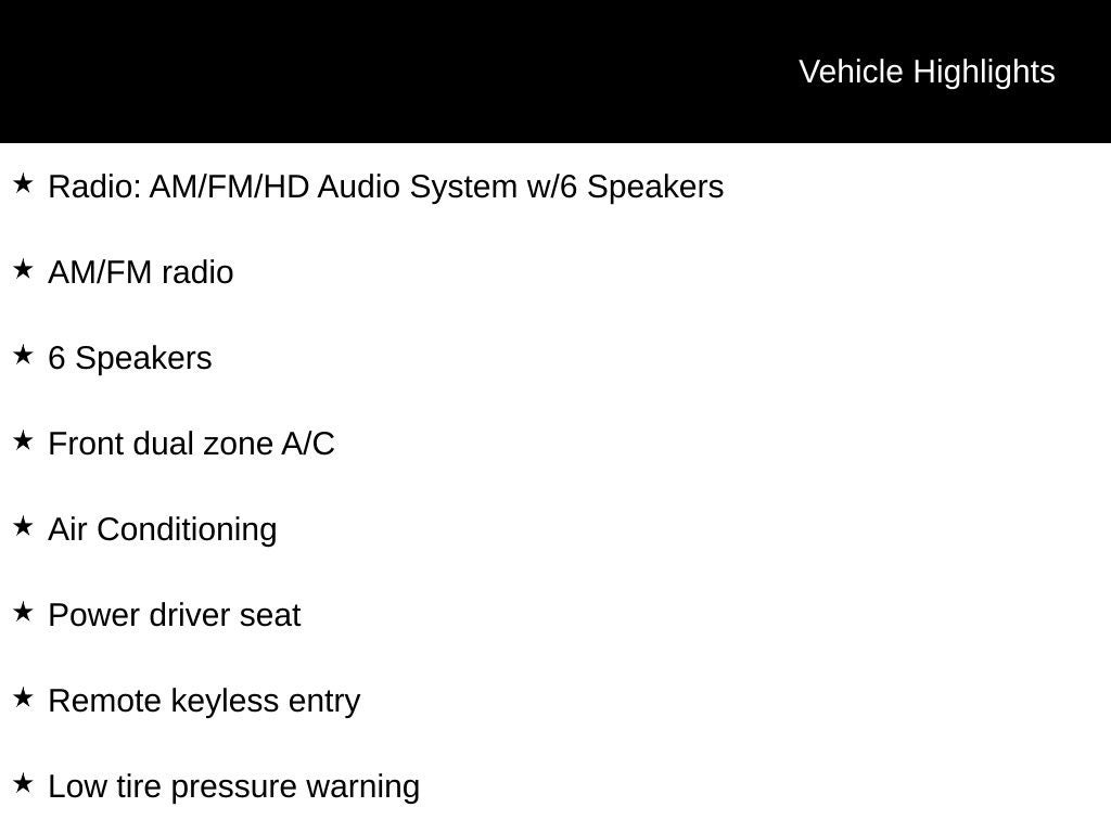 - Sport Shape Front Seats -inc: 6-way power adjustable driver's seat w/manual lumbar support and 6-way manual passenger seat