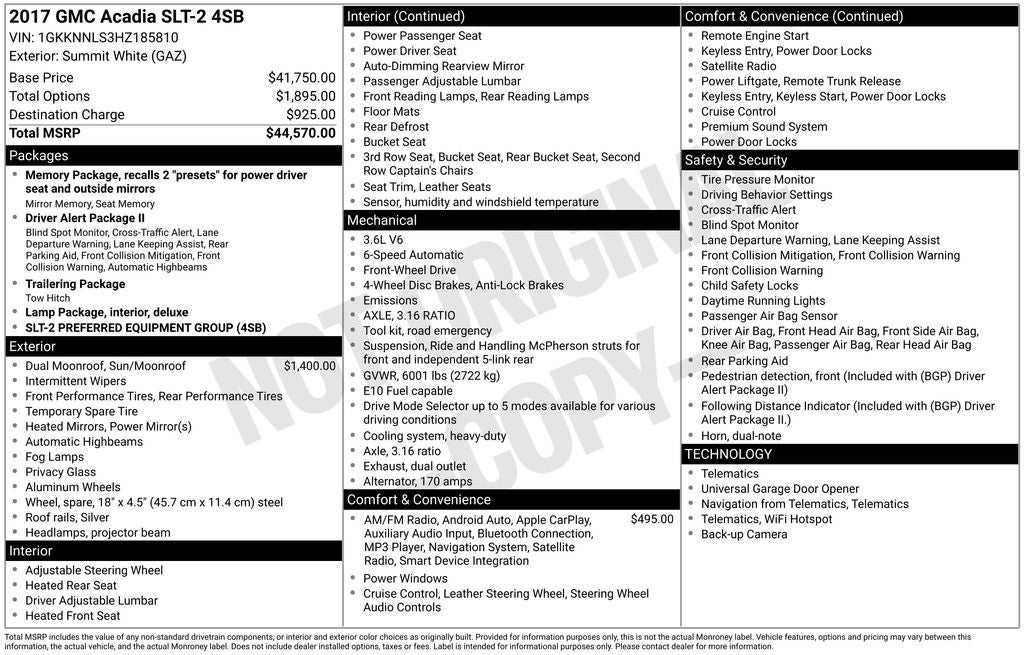 We invite you to visit our showroom and experience the 2017 GMC Acadia SLT-2 for yourself. Our knowledgeable sales team is ready to answer any questions you may have and help you discover how this exceptional SUV can enhance your driving experience. Don't miss the opportunity to make this Acadia your own.