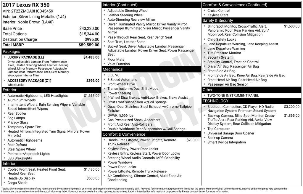 Don't miss the opportunity to own this exceptional 2017 Lexus RX 350. Contact us today to learn more and take the first step towards an unparalleled driving experience.