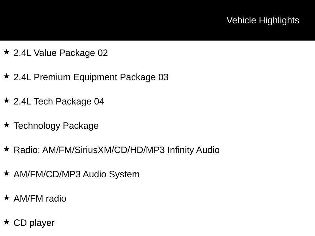 - Radio: AM/FM/CD/MP3 Audio System -inc: 5-inch color LCD display w/rearview camera, iPod/USB/aux input jacks and Bluetooth® hands-free phone system