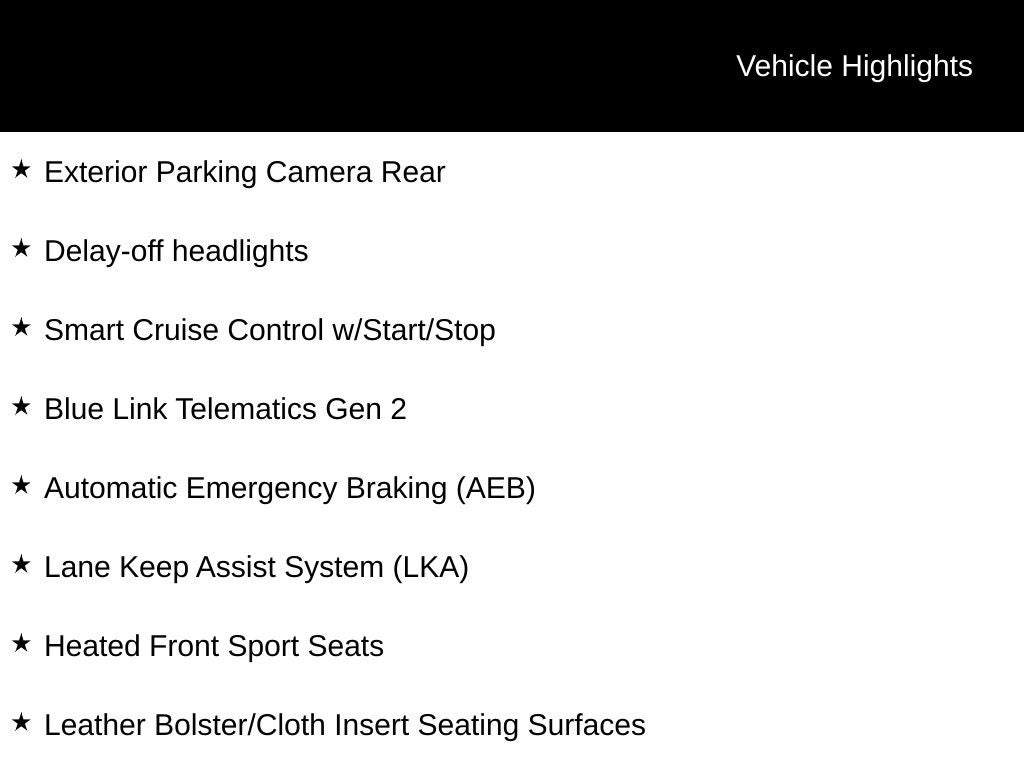 - Radio: AM/FM/HD/SiriusXM/MP3 Display Audio -inc: 7" color touchscreen, HD Radio technology w/multicasting, Apple CarPlay, Android Auto, integrated Bluetooth® w/phonebook transfer, 6 speakers (2 front-door-mounted, 2 tweeters and 2 rear) and iPod/USB, wireless phone charging and auxiliary input jacks, Blue Link Telematics Gen 2, Blue Link Connected Care Package (3-year complimentary trial) and Blue Link Remote Package (3-year complimentary trial)