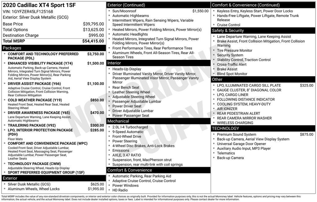 *Silver Dusk Metallic 2020 Cadillac XT4 Sport FWD 9-Speed Automatic 2.0L I4 Turbocharged 3.47 Axle Ratio, 4-Way Driver Seat Power Lumbar Control, 4-Way Passenger Seat Power Lumbar Control, 4-Wheel Disc Brakes, 4.2 Diagonal Color Display Driver Info Center, 6-Way Power Passenger Seat Adjuster, 7 Speakers, 7-Speaker Audio System w/Auxiliary Amplifier, 8-Way Power Driver Seat Adjuster, 8-Way Power Passenger Seat Adjuster, 8 Diagonal Color Display Driver Info Center, ABS brakes, Advanced Adaptive Cruise Control, Air Conditioning, Air Ionizer, AM/FM radio: SiriusXM, Apple CarPlay/Android Auto, Auto-dimming door mirrors, Auto-Dimming Inside Rear-View Mirror, Auto-dimming Rear-View mirror, Automatic Emergency Braking, Automatic Parking Assist w/Braking, Automatic temperature control, Body-Color Heated Power-Adjustable Outside Mirrors, Bose Centerpoint Surround Sound 13-Speaker System, Brake assist, Bumpers: body-color, Cargo Liner (LPO), Cold Weather Package, Comfort & Convenience Package, Comfort & Technology Preferred Package, Compass, Cruise Control w/Set & Resume Speed, Delay-off headlights, Driver Assist Package, Driver Awareness Package, Driver door bin, Driver vanity mirror, Dual front impact airbags, Dual front side impact airbags, Dual Panel Glass Sunroof w/Power Tilt/Sliding, Electronic Stability Control, Emergency communication system: OnStar and Cadillac connected services capable, Enhanced Automatic Emergency Braking, Enhanced Visibility Package, Exterior Parking Camera Rear, Following Distance Indicator, Four wheel independent suspension, Front & Rear All-Weather Floor Mats, Front & Rear Park Assist, Front anti-roll bar, Front Bucket Seats, Front Center Armrest, Front dual zone A/C, Front reading lights, Fully automatic headlights, Garage door transmitter, HD Rear Vision Camera, HD Surround Vision, Heated Automatic Steering Wheel, Heated door mirrors, Heated Driver & Front Passenger Seats, Heated Outside Mirrors w/Integrated Turn Signal, Heated Rear Outboard Seating Positions, Heavy-Duty Cooling System, Illuminated Cargo Sill Plate (LPO), Illuminated entry, IntelliBeam Automatic High Beam Control, Interior Protection Package (LPO), Knee airbag, Lane Keep Assist w/Lane Departure Warning, Leather steering wheel, Leatherette Seating Surfaces, Low tire pressure warning, Manual Rake & Telescopic Steering Column, Memory seat, Occupant sensing airbag, Outside temperature display, Overhead airbag, Overhead console, Panic alarm, Passenger door bin, Passenger vanity mirror, Power door mirrors, Power driver seat, Power Liftgate, Power Lumbar Massage Driver Seat, Power Lumbar Massage Front Passenger Seat, Power passenger seat, Power Rake & Telescopic Steering Column, Power steering, Power windows, Preferred Equipment Group 1SF, Radio data system, Radio: Cadillac User Experience AM/FM Stereo, Rain sensing wipers, Rear anti-roll bar, Rear Camera Mirror, Rear Camera Mirror Washer, Rear Pedestrian Alert, Rear reading lights, Rear seat center armrest, Rear window defroster, Rear window wiper, Reconfigurable Full-Color Head-Up Display, Remote keyless entry, Reverse Automatic Braking, Roof rack: rails only, Security system, SiriusXM w/360L, Speed control, Speed-sensing steering, Split folding rear seat, Spoiler, Sport steering wheel, Standard Suspension, Steering wheel mounted audio controls, Tachometer, Technology Package, Telescoping steering wheel, Tilt steering wheel, Traction control, Trailering Package, Trip computer, Variably intermittent wipers, Ventilated Driver & Front Passenger Seats, Voltmeter, Wheels: 20 Split 7-Spoke Polished Alloy (LPO), Wireless Charging. COMES WITH A WRITTEN FITZWAY CHECKOUT COVERING ALL MAJOR ITEMS! THE BEST GUARANTEE IN THE ENTIRE COUNTRY! DON'T PAY FOR A MISTAKE SOMEWHERE ELSE! No Added Market Adjustments or Hidden Fees! Transparency You Can Trust, That's The FitzWay! Please visit us at Fitzgerald Used Cars Clearwater between NE Coachman and Sunset Point RD on the north bound service rd. At 23499 US