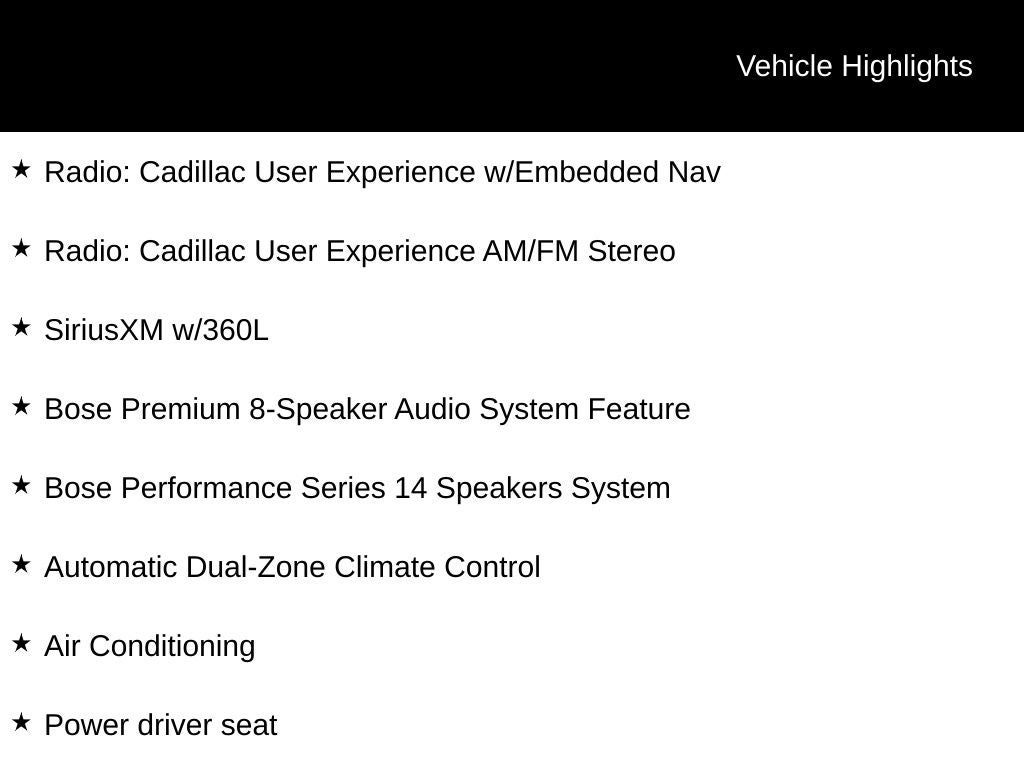 - Audio system feature, Bose premium 8-speaker system (Upgradeable to (UQP) Bose Performance Series 14-speaker audio system when (IOT) Cadillac user experience with embedded navigation is ordered.)
