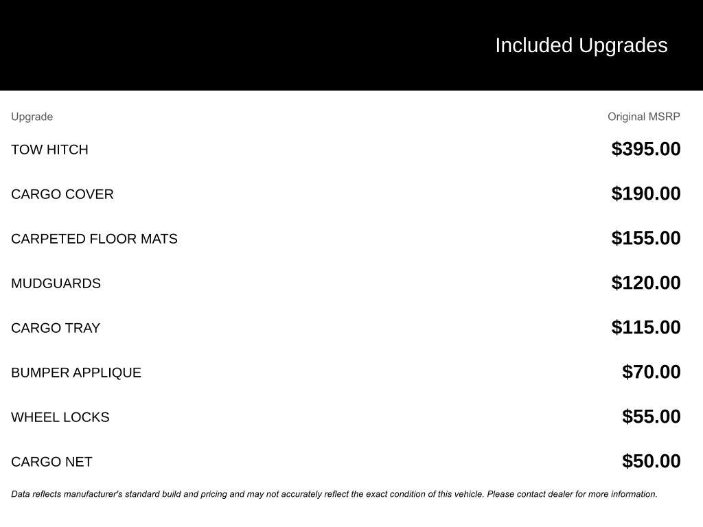 Max payload/towing estimate ratings shown. Additional options, equipment, passengers, and cargo weight may affect payload/towing weights. See dealer for details.