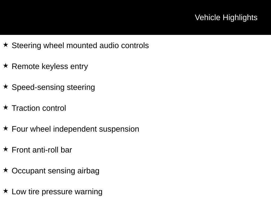 - Front Bucket Seats -inc: 6-way adjustable driver's seat w/height adjustment