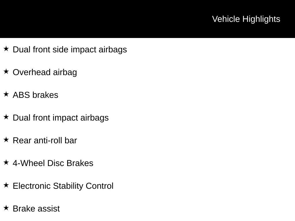 - 4-Wheel Disc Brakes w/4-Wheel ABS, Front Vented Discs, Brake Assist, Hill Hold Control and Electric Parking Brake