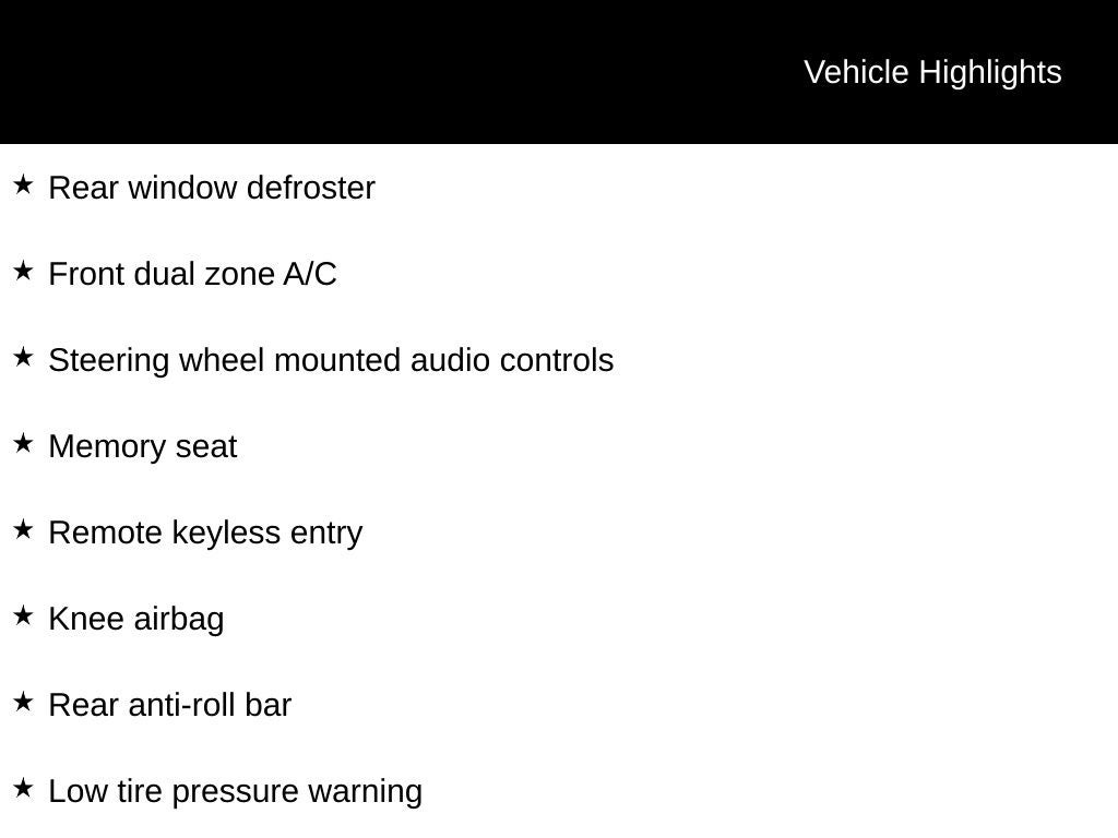 - Radio w/Seek-Scan, Clock, Speed Compensated Volume Control, Steering Wheel Controls and Radio Data System