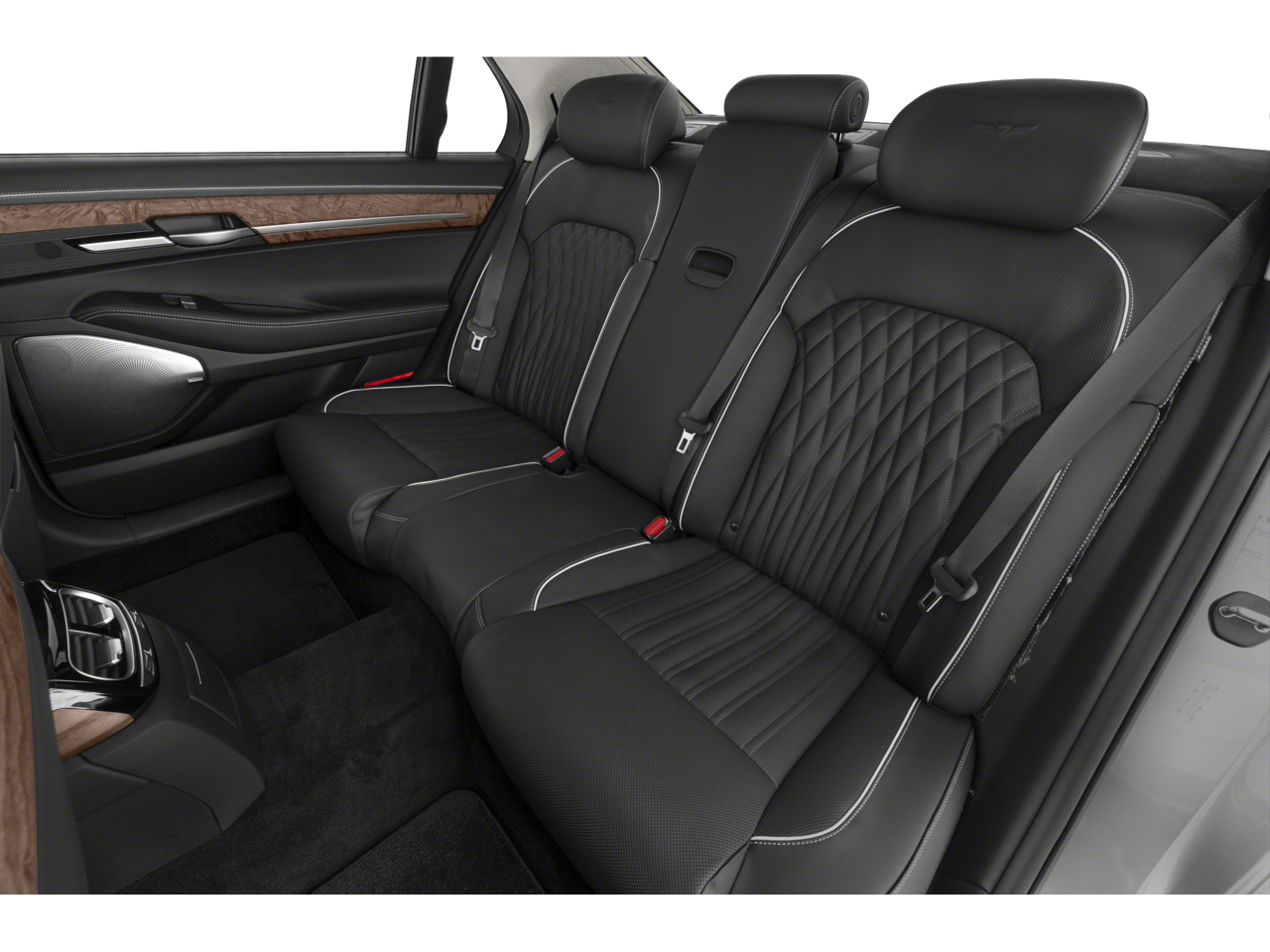 2021 Genesis G90 Uyuni White 3.3T Premium RWD 8-Speed Automatic with SHIFTRONIC 3.3L V6 DGI DOHC 24V 17 Speakers, 19 Multi-Spoke Wheels, 4-Wheel Disc Brakes, ABS brakes, Adaptive suspension, Air Conditioning, Alloy wheels, AM/FM radio: SiriusXM, Android Auto & Apple CarPlay, Anti-whiplash front head restraints, Auto High-beam Headlights, Auto tilt-away steering wheel, Auto-dimming door mirrors, Auto-dimming Rear-View mirror, Auto-leveling suspension, Automatic temperature control, Brake assist, Bumpers: body-color, Compass, Delay-off headlights, Door auto-latch, Driver door bin, Driver vanity mirror, Dual front impact airbags, Dual front side impact airbags, DVD-Audio, Electronic Stability Control, Emergency communication system: Genesis Connected Services, Four wheel independent suspension, Front anti-roll bar, Front Bucket Seats, Front Center Armrest, Front dual zone A/C, Front reading lights, Fully automatic headlights, Garage door transmitter: HomeLink, Genuine wood console insert, Genuine wood dashboard insert, Genuine wood door panel insert, Head restraints memory, Heads-Up Display, Heated & Ventilated Front Bucket Seats, Heated door mirrors, Heated front seats, Heated rear seats, Heated steering wheel, Illuminated entry, Knee airbag, Leather Shift Knob, Leather steering wheel, Low tire pressure warning, Memory seat, Multi-Spoke Wheel Option (02), Nappa Leather Seating Surfaces, Navigation System, Occupant sensing airbag, Outside temperature display, Overhead airbag, Overhead console, Panic alarm, Passenger door bin, Passenger vanity mirror, Power adjustable front head restraints, Power door mirrors, Power driver seat, Power moonroof, Power passenger seat, Power steering, Power windows, Radio data system, Radio: AM/FM/HD/SiriusXM/CD/DVD Audio System, Rain sensing wipers, Rear air conditioning, Rear anti-roll bar, Rear reading lights, Rear seat center armrest, Rear side impact airbag, Rear Window Blind, Rear window defroster, Remote CD player, Remote keyless entry, Security system, Speed control, Speed-sensing steering, Speed-Sensitive Wipers, Steering wheel memory, Steering wheel mounted audio controls, Tachometer, Telescoping steering wheel, Tilt steering wheel, Traction control, Trip computer, Turn signal indicator mirrors, Variably intermittent wipers, Ventilated front seats, Wheels: 19 x 8.5J Fr & 19 x 9.5J Rr Chrome Alloy.