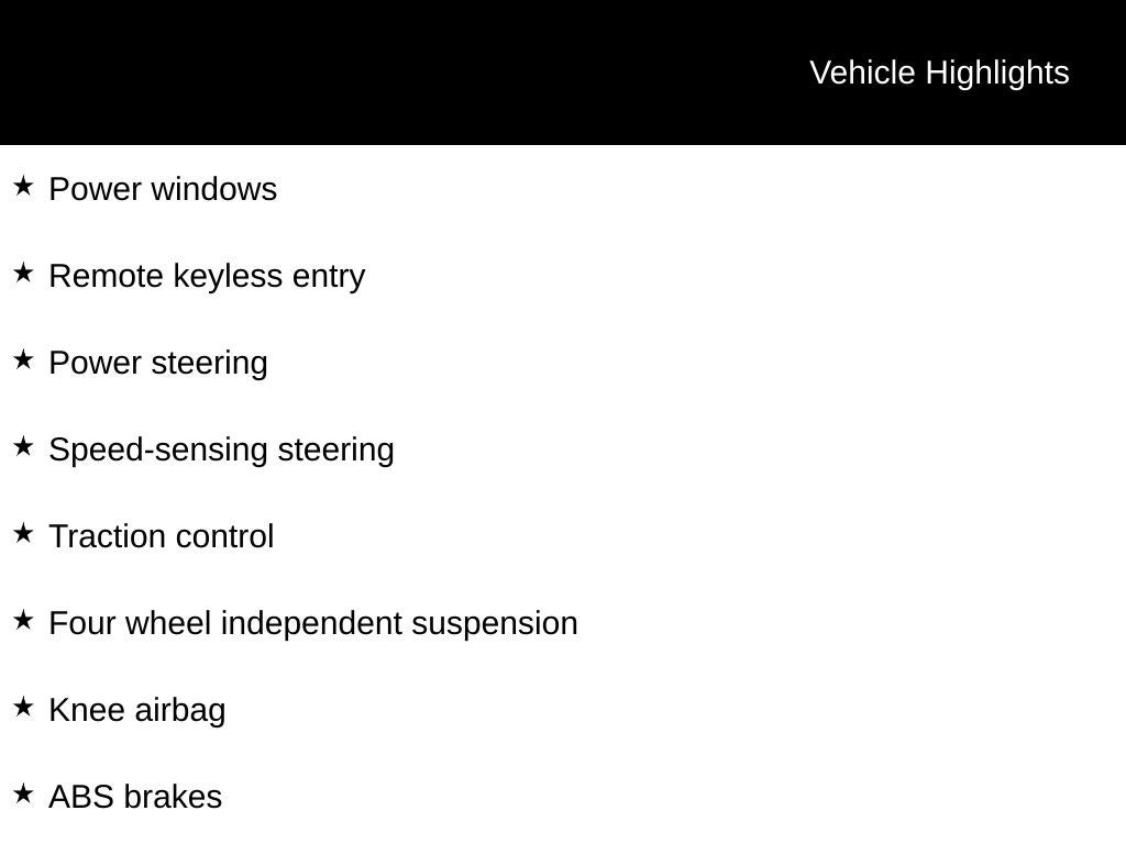 - Brake ABS System: 4-Wheel