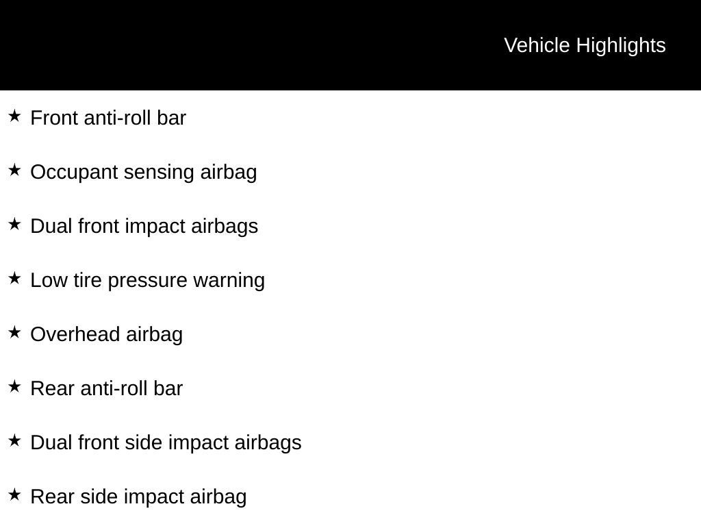 - Dual front side impact airbags