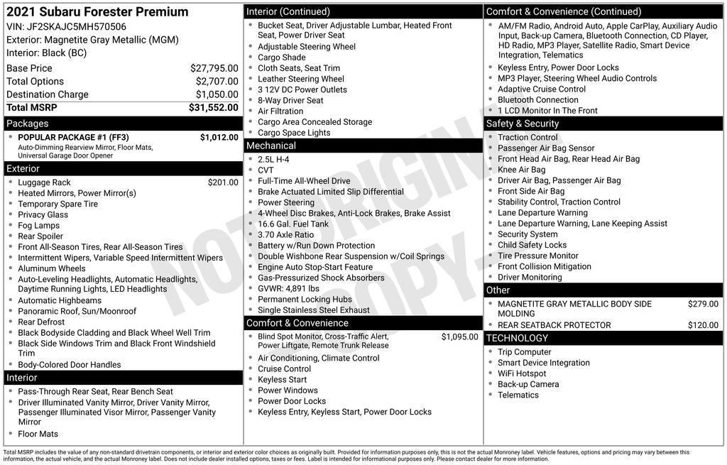 - Vehicle Name: Subaru Forester