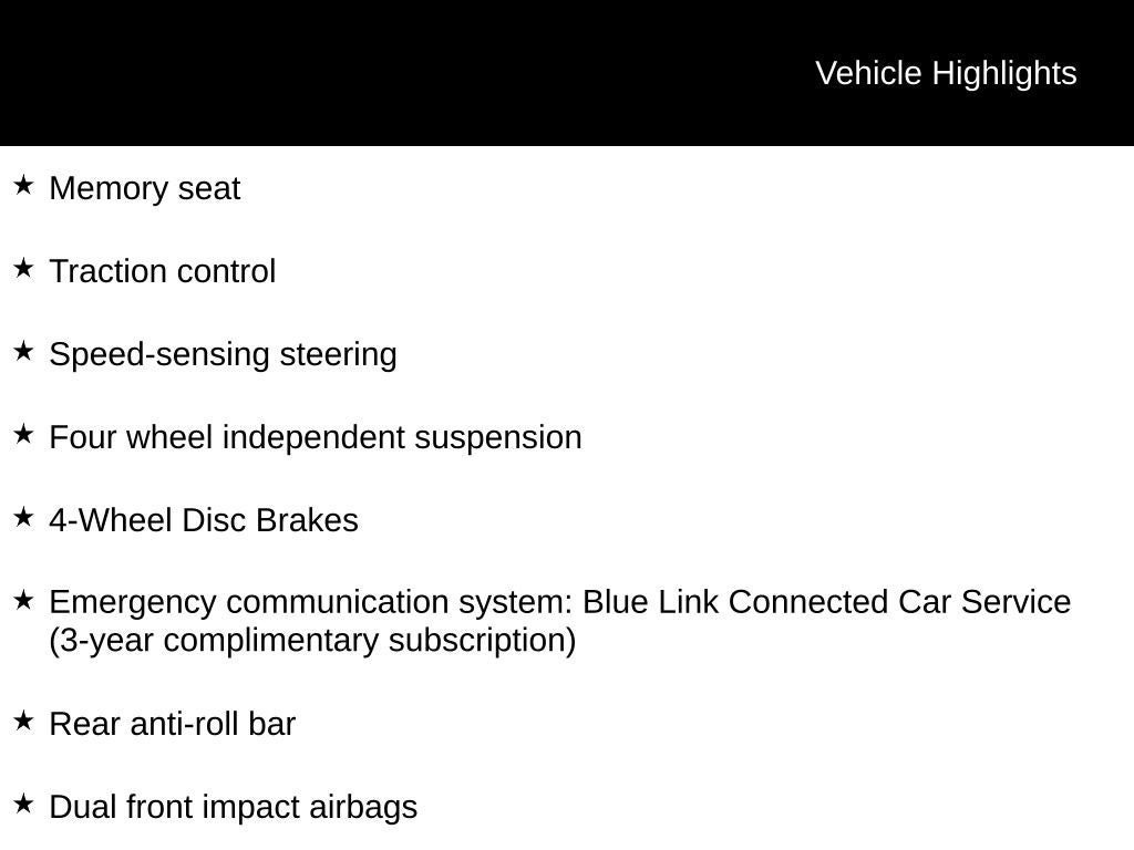 - Radio: AM/FM/MP3/HD/SiriusXM Display Audio w/Nav -inc: 10.25" color touchscreen, Bose premium audio w/12 speakers (1 center channel, 2 dash, 2 front tweeters, 4 door mounted, 2 rear mounted speakers plus 1 rear mounted subwoofer), dynamic voice recognition, integrated Bluetooth®, Blue Link connected car system, Apple CarPlay, Android Auto, USB, diversity antenna for navigation and HERE HD traffic