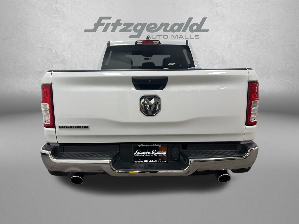 Bright White Clearcoat 2023 Ram 1500 Big Horn/Lone Star RWD 8-Speed Automatic HEMI 5.7L V8 Multi Displacement VVT eTorque 6 Speakers, Big Horn Badge, Cloth Bench Seat, Emergency communication system: SiriusXM Guardian, Exterior Parking Camera Rear, Fully automatic headlights, GPS Antenna Input, Integrated Voice Command w/Bluetooth®, Low tire pressure warning, Overhead console, Power door mirrors, Power windows, Quick Order Package 27Z Big Horn, Radio data system, Rear seat center armrest, Rear step bumper, Remote keyless entry, Speed control, Steering wheel mounted audio controls, Wheels: 18 x 8 Cast-Aluminum Painted.