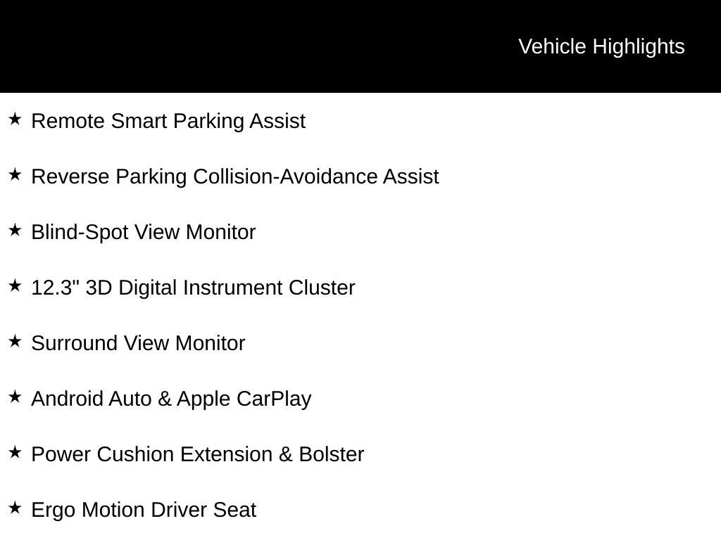 - Body-Colored Power w/Tilt Down Heated Auto Dimming Side Mirrors w/Power Folding and Turn Signal Indicator