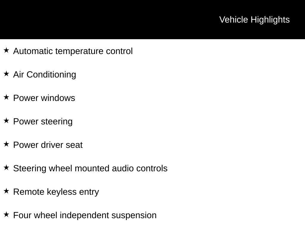 - Radio w/Seek-Scan, Clock, Speed Compensated Volume Control, Steering Wheel Controls, Voice Activation and Radio Data System
