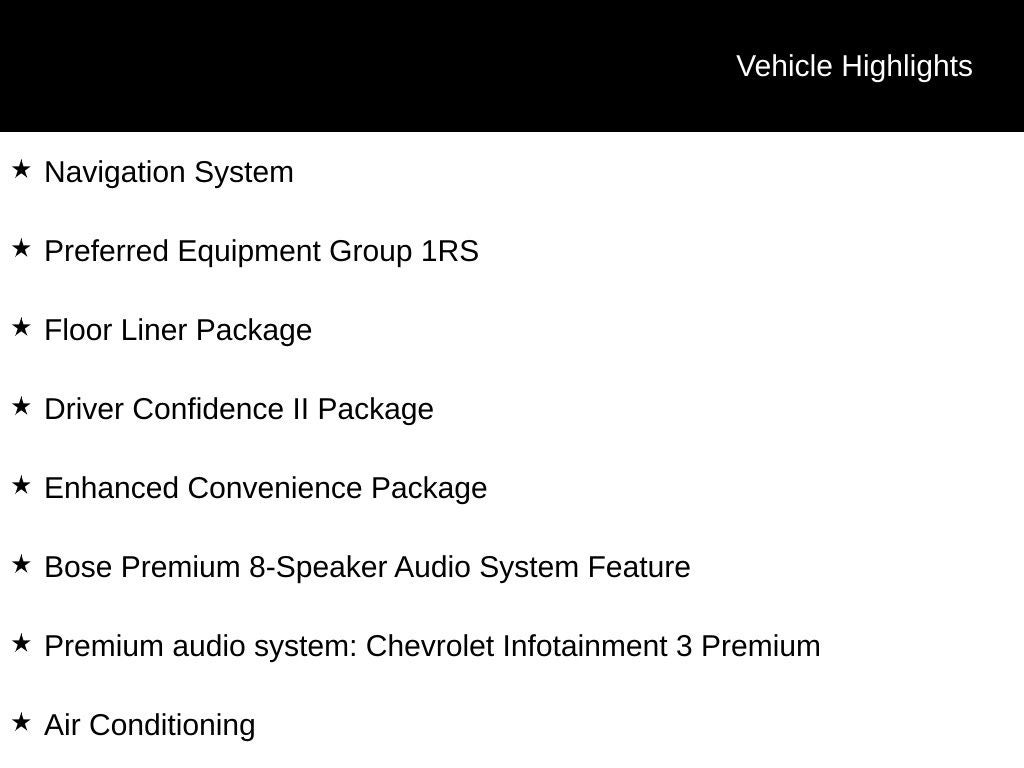 - Audio system, Chevrolet Infotainment 3 Premium system with connected Navigation, 10.2" diagonal HD color touchscreen, AM/FM stereo, Bluetooth® audio streaming for 2 active devices, Apple CarPlay and Android Auto capable, enhanced voice recognition, additional memory for in-vehicle apps, cloud connected personalization for select infotainment and vehicle settings. Subscription required for enhanced and connected services after trial period.