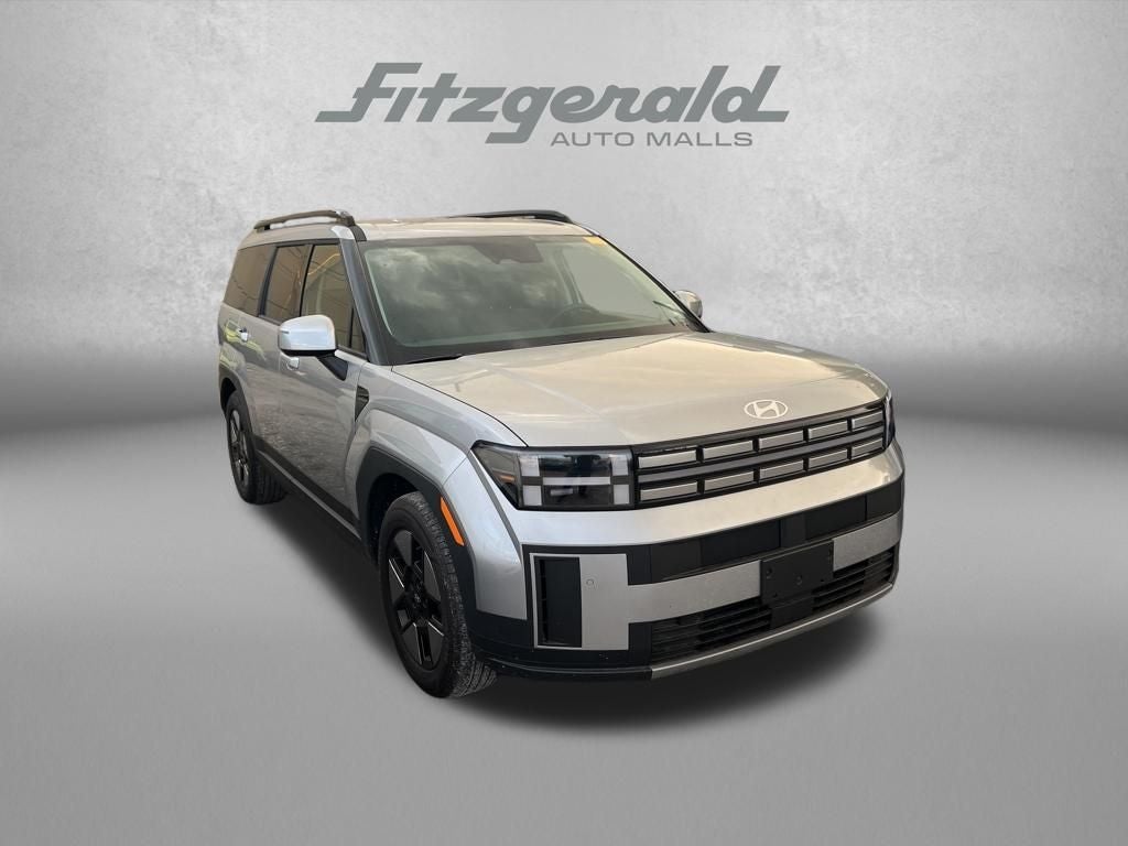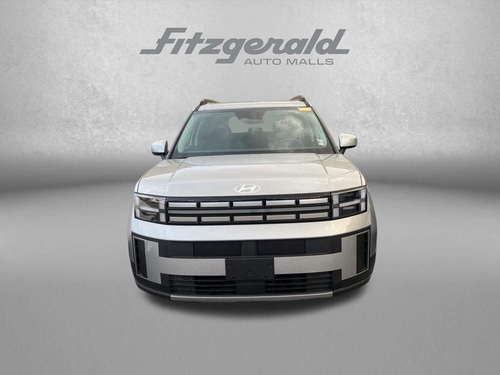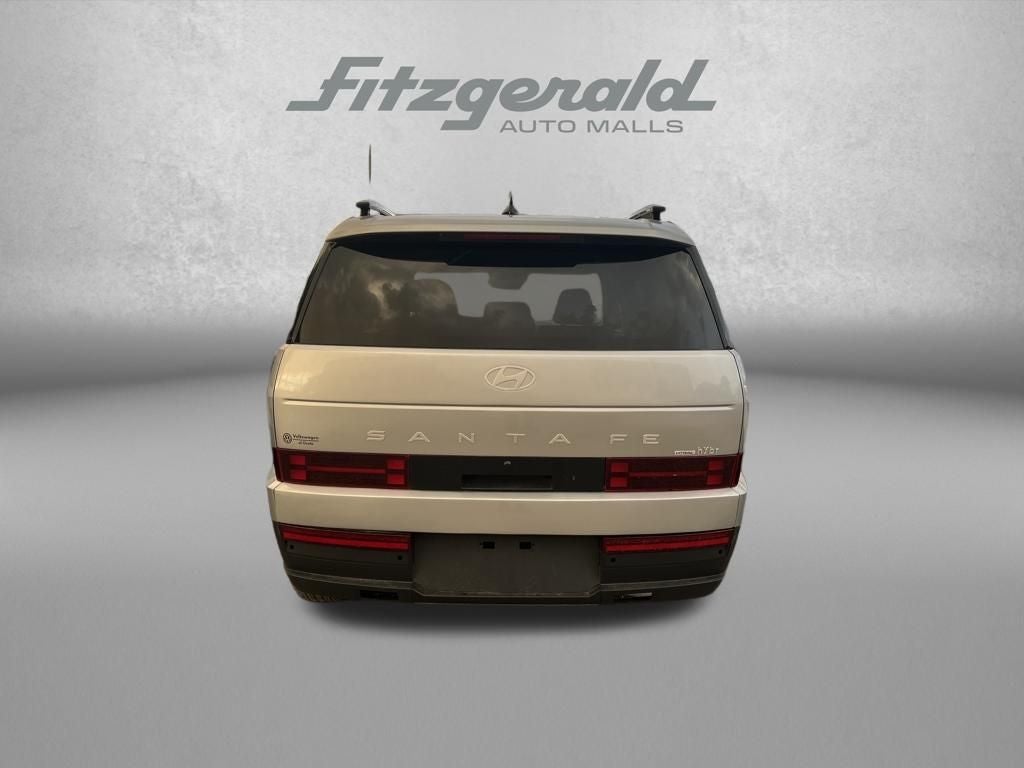 Shimmering Silver 2025 Hyundai Santa Fe Hybrid SEL AWD 6-Speed Automatic with Shiftronic I4 I4, 18 x 7.5J Alloy Wheels, 3rd row seats: bench, Apple CarPlay & Android Auto, Exterior Parking Camera Rear, Front dual zone A/C, H-Tex Leatherette Seat Trim, Heated Front Bucket Seats, Power driver seat, Power Liftgate, Radio: AM/FM/HD Display Audio, Steering wheel mounted audio controls, Turn signal indicator mirrors.
