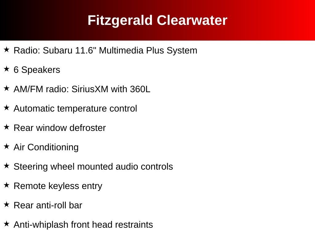 ** SUBARU CERTIFIED ** You will love our NO HAGGLE, NO HASSLE PRICING here at Fitzgerald Auto Mall. Ask us about our BUYER PROTECTION PLAN, LOANER CAR PROGRAMS, AND FREE Vehicle History Report -- ALL FITZGERALD PRICES ARE REAL PRICES WITH NO SNEAKY PRICE CONDITIONS OR ADDITIONAL RECONDITIONING OR CERTIFICATION CHARGES! BUY WITH CONFIDENCE, SUBARU CERTIFIED, FITZGERALD GUARANTEED WITH A WRITTEN,10 DAY/500 MILE WRITTEN MONEY BACK GUARANTEE!! 30 DAY/1500 MILE EXCHANGE POLICY!! ** No Added Market Adjustments or Hidden Fees! Transparency You Can Trust, That's The FitzWay!