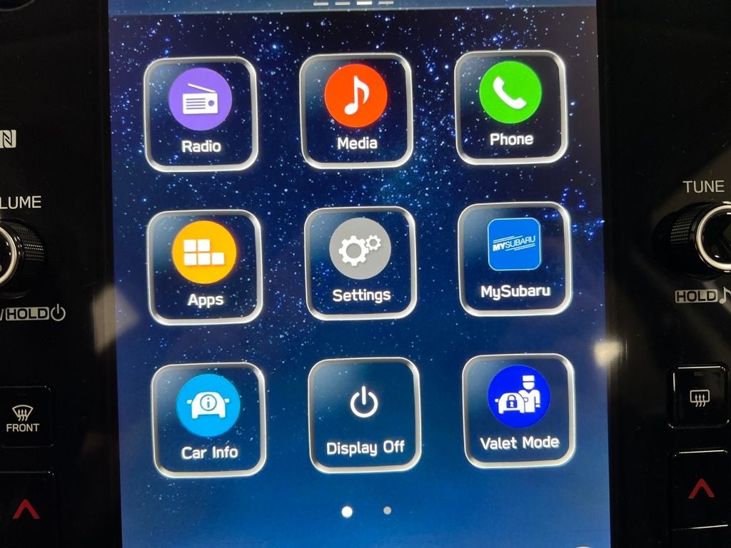 - Radio: Subaru 11.6" Multimedia Plus System -inc: AM/FM stereo, HD Radio, multi-touch gesture high resolution display screen, voice activated controls, Bluetooth® audio streaming and hands-free phone connectivity, Bluetooth® hands-free SMS text messaging connectivity, iPod control capability, smartphone integration: wired and wireless Android Auto w/full screen view and wireless Apple CarPlay w/full screen view, USB and Over The Air (OTA) audio system update, steering wheel audio system and Bluetooth® control switches, 6 speakers (2 dash panel tweeter, 2 front door and 2 rear door), illuminated 3.5mm auxiliary input jack, illuminated front USB A and C input/charge ports, connected services operation indicator, SOS emergency assistance: red SOS button and enhanced roadside assistance: blue i-button
